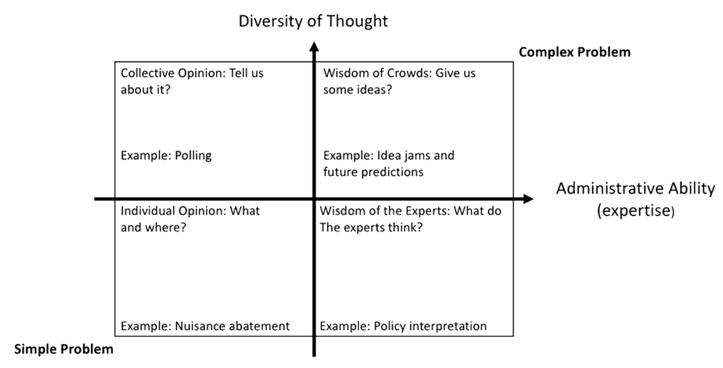 This first figure is how they present their initial framework. It allows for you to identify whether you have a complex or simple problem and the level of expertise you need and the diversity of thought you want.