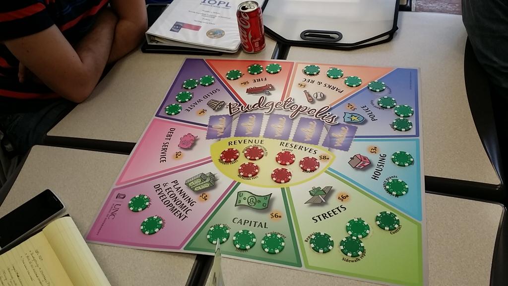 That leads me to my second lesson, keep “lecturing” to a minimum. There are A TON of activities that you can do with them depending on how much time you have with them. One activity that I brought was the School of Government’s Budgetopolis game. It was a huge hit. I let each group name their city and had a “Twitter feed” on a whiteboard calling them out. They really loved that and it helped them understand that some choices are harder to stomach than others are. One of the other activities that we did is that I asked them all to create a personal budget. I gave them instructions about what their budget was and what their parents would continue to pay for. Some chose to invest it all in stocks and others all in Pokemon cards and candy. What it did though was show them the importance of budget constraints, prioritizing spending, and recurring versus one-time costs. It also led to a great conversation about shocks, what happens when an opportunity presents itself—where do you get your money? Did you cut something? The students were great and when I found ways to let them experience the lessons I could see the wheels turn and them start to really make the connections.