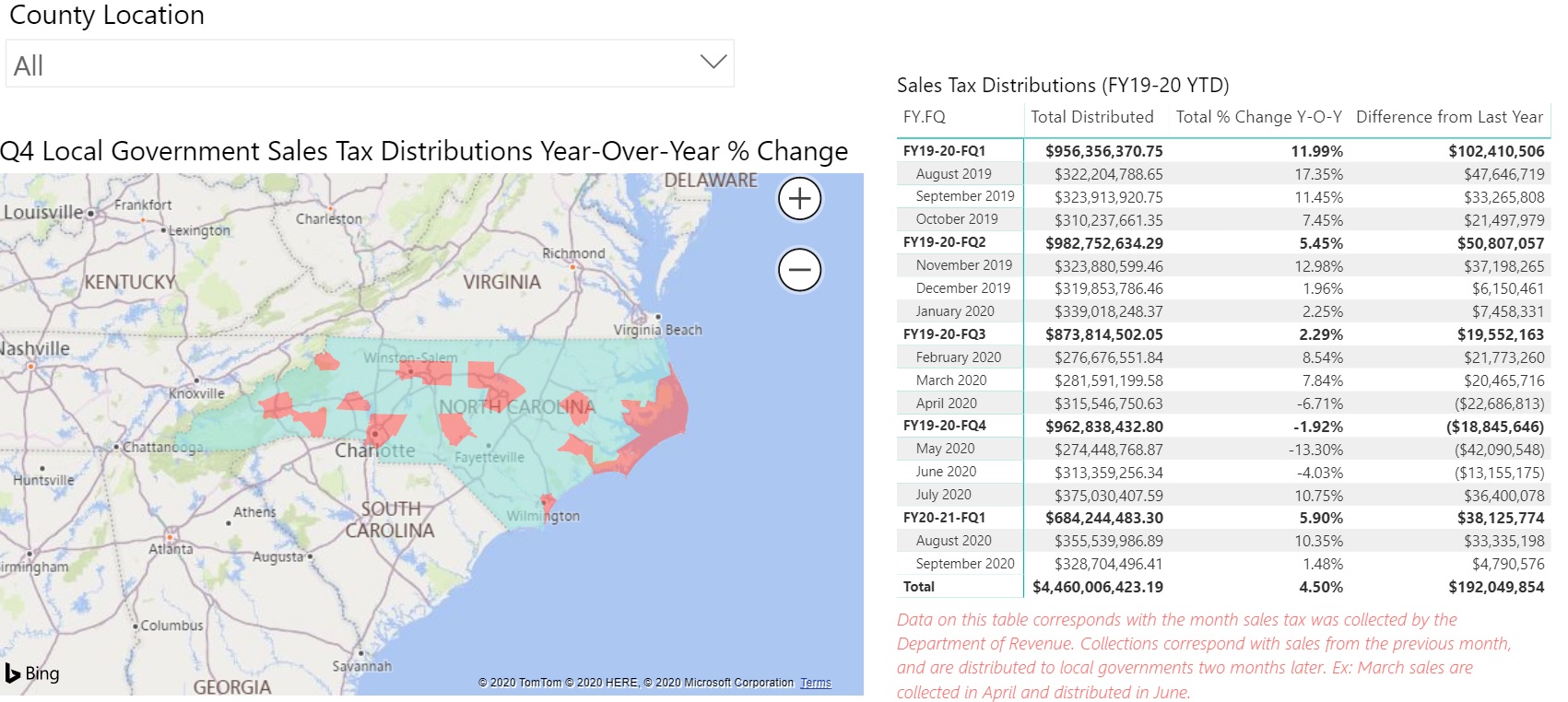 - A: This is an incredibly hard year, possibly the hardest other than the current FY, to forecast for. There is so much unknown. When will the vaccine become widely available? Will people take it? Will we have another shutdown in the meantime? Will there be another stimulus check? So, I know that in previous recessions this would have absolutely been the strategy and a good one. However, I want to encourage you to do a bit more. First, these statewide numbers are just not nearly as helpful as they may have been in the past. My favorite example of this is to think about tourism. In some of our urban centers and our areas where tourists primarily stay in hotels and motels, tourism has plummeted and by even more than we would expect to see in a recession. However, for some of our communities where most visitors stay in an Airbnb or a cottage or a VRBO or not a hotel, then their tourism is up in many cases—especially their off-season tourism. People, especially the slightly more affluent, are working remotely. Their kids are working remotely. They are working from beaches and cabins and not always from home. So, these communities are not seeing the drop-off in tourism (and the sales tax, occupancy tax, and food and beverage tax) that they would normally see during a recession. Therefore, the Great Recession and those statewide numbers are just not as helpful. While tourism is a really useful example, it is far from the only one. Other important populations have been impacted by more than just unemployment and underemployment (which is what we see as the unfortunate impact of most recessions). For example, commuting is way down. When those commuters were coming in they were paying sales taxes (and food and beverage taxes) that is no longer as true and something that was much less impacted in previous recessions. Another example is college students. Many communities that have large residential (especially) colleges or universities are experiencing greater sales tax shortfalls than they would have in the previous recession and more than their peer communities are around the state. The students going home and/or changing their lifestyles is incredibly impactful for places like Chapel Hill. This is likely part of why we see urban areas being more impacted in many states than their less urban counterparts. So, at the end of the day look at your community, examine how its economy has been impacted (like what s going on in manufacturing, health care, etc) and make more nuanced forecasts. That is not to say that looking back at the Great Recession and the statewide numbers will not be helpful. I would encourage you to look at periods with comparable unemployment numbers and look at how that impacted sales taxes (and others, such as property tax collection rates). However, this recession is so different that we should not expect it to behave and impact our citizens and revenues the same way.